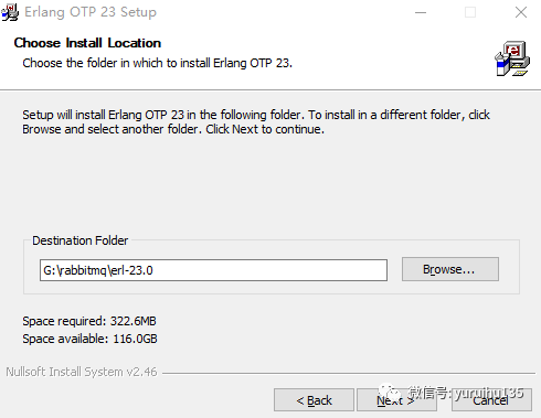 在点击 Next 之后,需要我们选择 erlang 的安装路径,这个大家根据自己的实际情况进行选择即可,没有任何要求,如下图所示:
