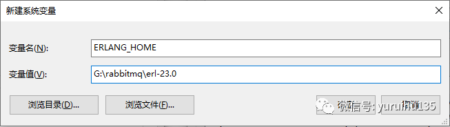 变量值 : 该变量值就是我们本地 erlang 的安装路径,注意是全路径,而不是相对路径。