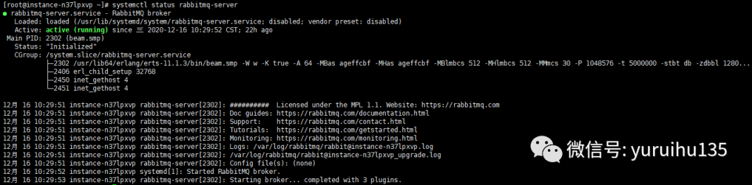 看到如下截图即表示 RabbitMQ 服务启动成功