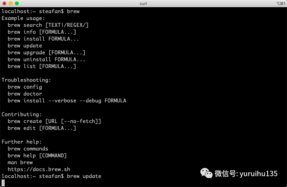 更新 HomeBrew ,我们只需要输入以下命令: