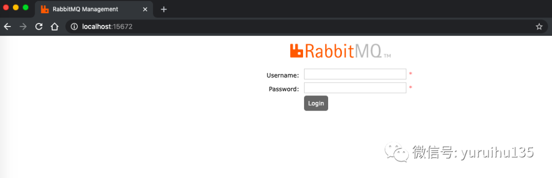 然后我们在本机浏览器中,访问以下地址,如果可以打开 RabbitMQ 的管控台界面,说明我们的 RabbitMQ 服务已经成功安装到了我们的 Mac 电脑中,且可以愉快的玩耍了。