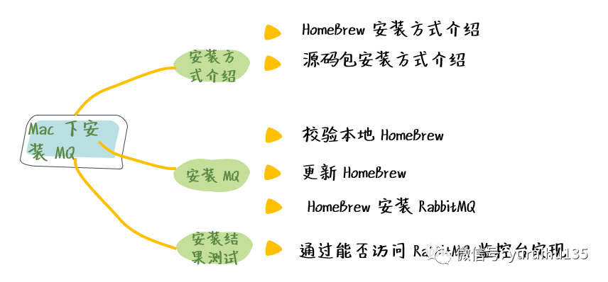 以上就是 Mac OS 系统环境中,安装依赖的常见的两种安装方式,同学们可以根据自己的实际情况,来选择采用哪种安装方式。出于综合角度考虑,本节会采用以 HomeBrew 的方式来完成 RabbitMQ 消息服务中间件的安装,请同学们做好准备。