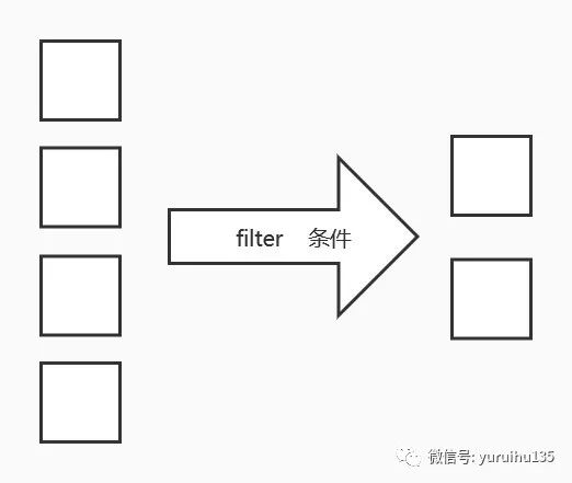 3.4 filter filter 用来过滤元素,在元素遍历时,可以使用 filter 来提取我们想要的内容,这也是集合常用的方法之一。其示意图如下: