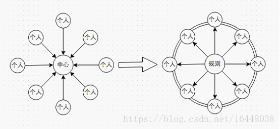 目前的基本所有机构,都可以认为是一个“中心化”的机构,例如:我们使用的聊天工具——微信,那么中心节点就是腾讯公司,分布节点就相当于我们用户,我们的各种信息,都存在腾讯公司的数据库中,腾讯公司想要修改我们的信息,窃听我们的消息,是非常容易的,因为腾讯公司就是“中心”,我们微信上使用的一切,都要依赖于腾讯公司这个中心。依次类推,我们的银行系统(央行是中心),我们的货币系统(央行是中心),国家机构(中央政府是中心)。这就是“中心化”。