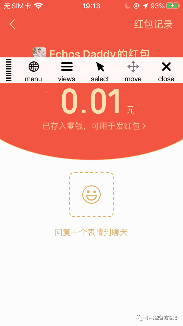 上面的代码测试后发现并不能用,暂时还没修复。写完这个文章再看看修复下。整体思路就是tweak消息接收方法判断是否为红包消息,如果是红包消息就直接自动接收就行了。后面修复后再发文章。