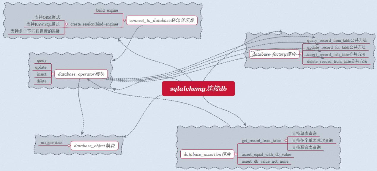首先来一张自动化框架数据库连接的整体思维图:
