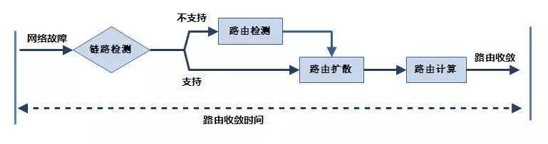 路由收敛指网络从链路或者设备发生故障,到全网节点计算出新的路径的整个过程,与组网结构、路由协议、链路类型、设备性能都有关系。路由收敛的大致过程如图3所示: