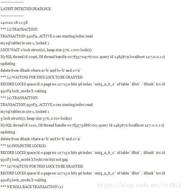 两个单条的sql语句涉及到的加锁数据相同,但是加锁顺序不同,导致了死锁。
