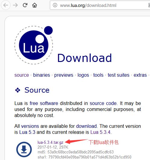 2.1、去官网下载lua,可以直接通过wget下载,地址如下:http://www.lua.org/download.html