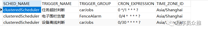 存储定义的trigger,和qrtz_fired_triggers存放的不一样,不管trigger触发了多少次都只有一条记录,TRIGGER_STATE用来标识当前trigger的状态