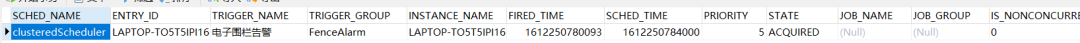 Quartz提供的锁表,为多个节点调度提供分布式锁,实现分布式调度,默认有2个锁。 STATE_ACCESS主要用在scheduler定期检查是否失效的时候,保证只有一个节点去处理已经失效的scheduler; TRIGGER_ACCESS主要用在TRIGGER被调度的时候,保证只有一个节点去执行调度;