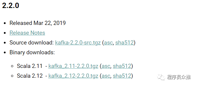 kafka_2.11-2.2.0前面的2.11,2.12代表scala的版本号。实际版本号是2.2.0,分别为MajorVersion-MinorVersion-Patch号,Kafka下载地址https://kafka.apache.org/downloads