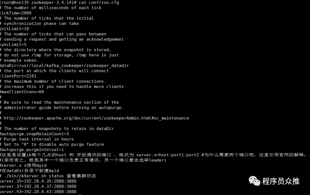 如下图修改dataDir目录,在此目录下写入myid,添加集群通信配置