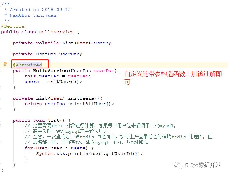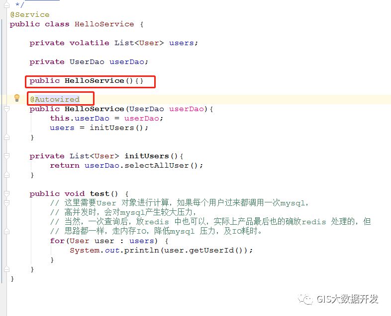 需求:期望在Spring 容器启动,注入bean(UserService) 的时候,初始化bean时,给bean 内的一个全局变量赋值。 该值是在启动时,调用 userDao ,查询取值。(这里放JVM 内存中,会导致集群模式下,每台机器的数据不一致问题:JVM启动时间不一样,数据会被更新,所以最好存入redis 中,使用时,从redis 拿)