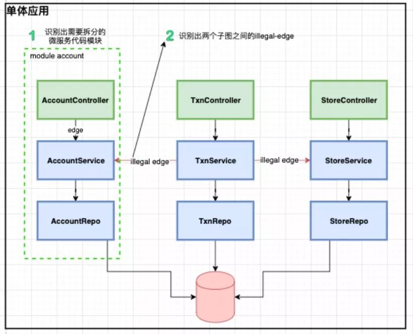 上述步骤中存在挑战的地方为步骤2、3。对于步骤2 一种方法可以在单体内部人肉搜索并消除illegal edge,另一种方法把代码先拆分依靠编译错误驱动解决。