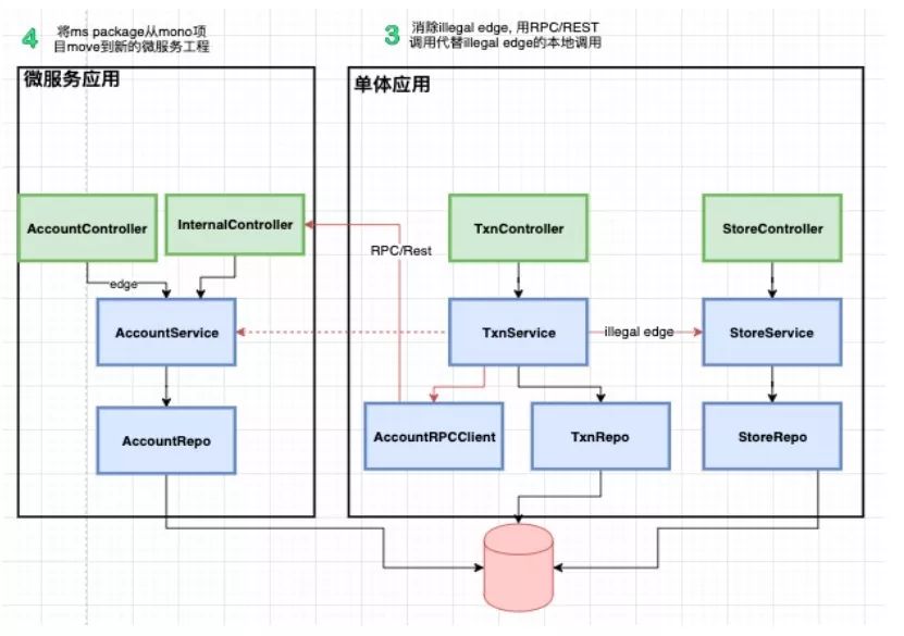 延续上面的列子,illegal edge 的caller为mono的TxnService.doTxn(), calllee为 ms的AccountServicey.queryAccount(…)。需要做如下重构: