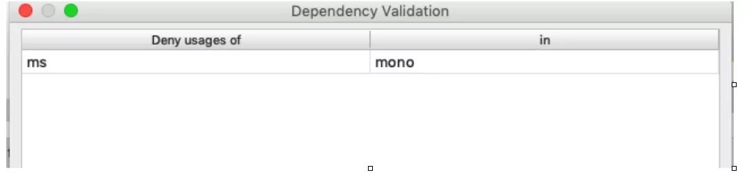 定义完成后运行analyze dependency功能所有illegaal edge都会高亮显示。