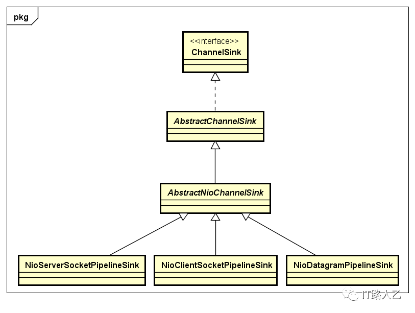 ChannelSink接收和处理终端的downstream通道事件。类继承图如下