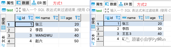 cursor.execute("UPDATE test SET name='王五3' WHERE id=3")