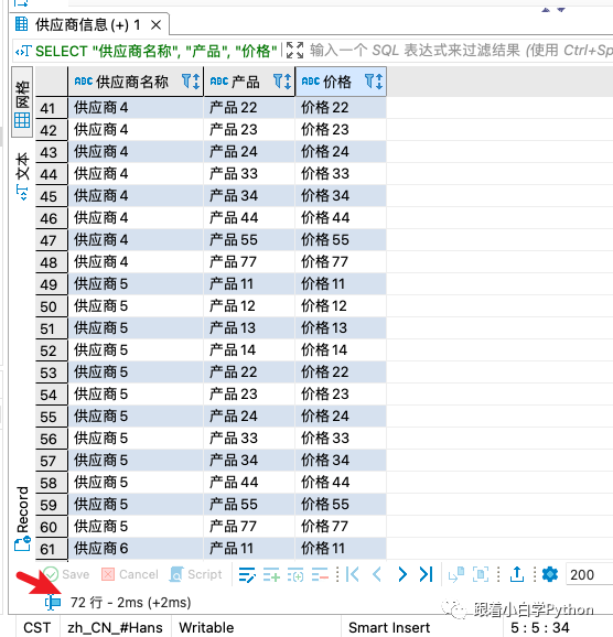 这样的好处是:信息不会重复,减少数据量。如果信息需要更新则只更新对应表中的单行记录即可。而两张表可以通过唯一的供应商ID进行关联。这也是关系型数据库这一称呼的来源。