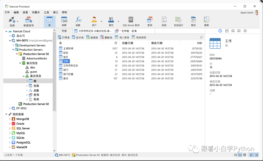 特点:Navicat Premium 是一套数据库开发工具,让你从单一应用程序中同时连接 MySQL、MariaDB、MongoDB、SQL Server、Oracle、PostgreSQL 和 SQLite 数据库。它与 Amazon RDS、Amazon Aurora、Amazon Redshift、Microsoft Azure、Oracle Cloud、MongoDB Atlas、阿里云、腾讯云和华为云等云数据库兼容。你可以快速轻松地创建、管理和维护数据库。缺点是收费,但是有免费试用。