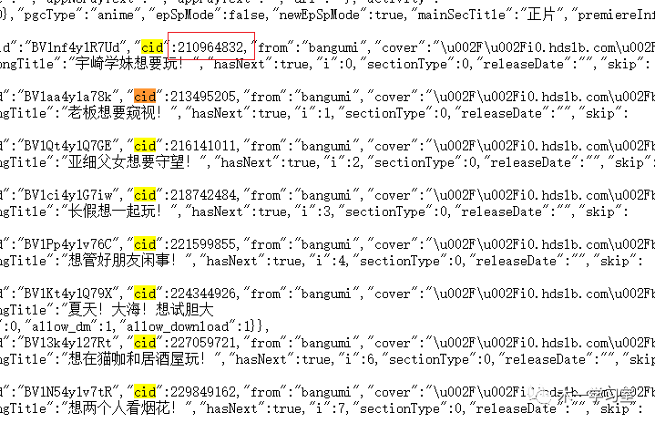要获取弹幕首先要知道弹幕在哪儿,通过搜索发现研究分析可以发现B站弹幕文件保存在一个地址为:https://api.bilibili.com/x/v1/dm/list.so?oid={视频cid号} 的链接里,那找到视频的cid号就很容易找到对应的弹幕了。