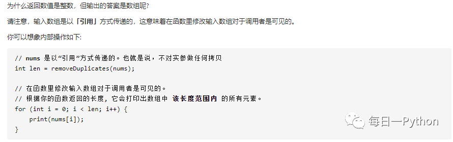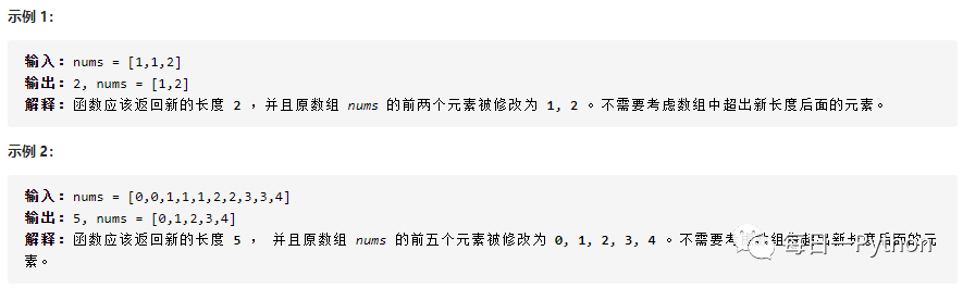 要原地删除数组,所以不能另外新声明一个数组;数组是有序的,那就比较好办,定义一个变量来表示删除重复数字后的当前插入位置,遍历,比较它和遍历数组的位置的数字大小,相同则继续遍历,否则写入数组: