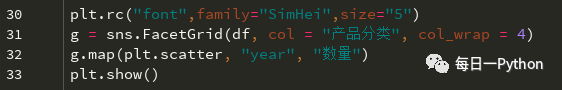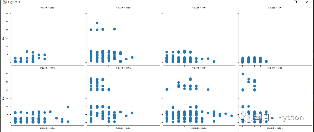 如果是其他图的话,用facetgrid,直接设置col="产品分类"就行(col_wrap来设置每行的子图个数)