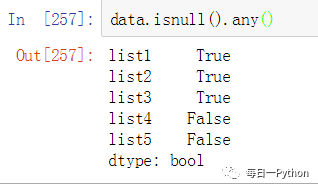 要是判断某一列中有空值存在,可以使用isnull().any():