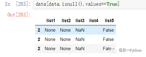 可以用data[data.isnull().values==True]来筛选含有空值的行,但是如果某行有多个值是空值,则会重复次数出现,所以利用data[data.isnull().values==True].drop_duplicates()来去重: