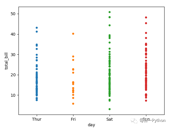 (1)散点图stripplot、带分布的散点图swarmplot、箱线图boxplot、小提琴图voilinplot、直方图barplot、计数直方图countplot 都属于分类数据类型