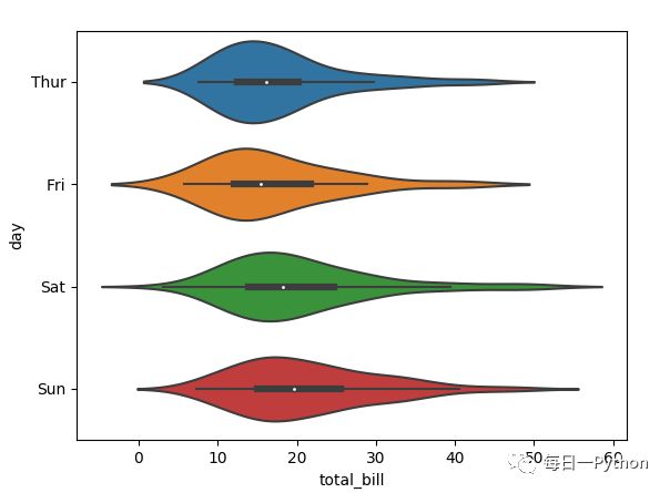 ax = sns.violinplot(x="total_bill", y="day", data=tips)