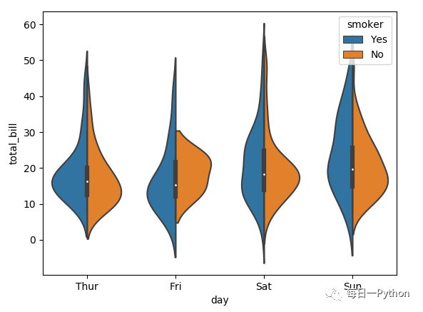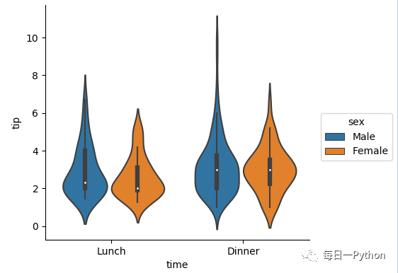 #hue分组,split=Ture似两个分组共用一个violin,节省空间