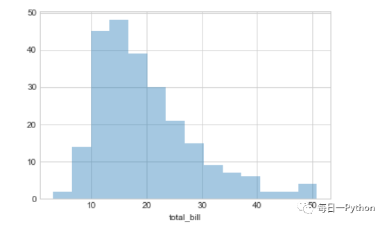 ax = sns.distplot(tips["total_bill"], kde= False)