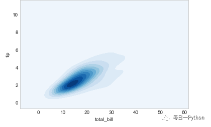 ax = sns.kdeplot(tips['total_bill'], tips['tip'],