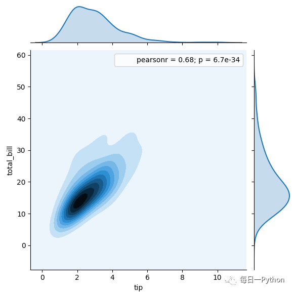 jointplot是画两个变量或者单变量的图像,用kind设置图形类型