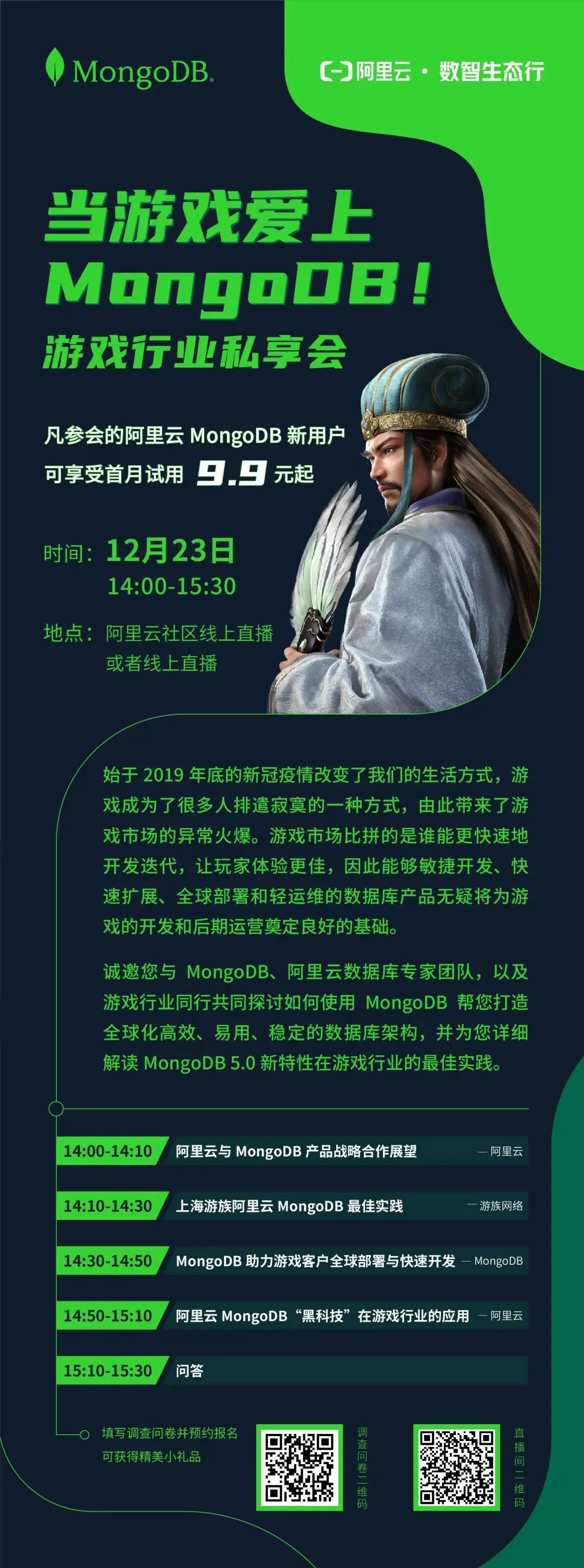 12月23日(周四)阿里云|MongoDB中国区域游戏行业私享会重磅来袭!