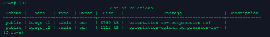 WITH (ORIENTATION = COLUMN);–插入和行存表相同的数据