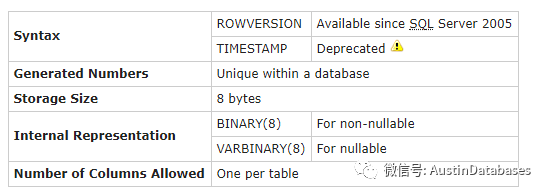 事情的发生时这样的,在很久很久以前,SQL SERVER 有一个字段类型叫timestamp, 对比其他数据库都没有的 row version 自动化管理的东西。这个东西厉害的地方,虽然看上去可能是一个时间字段,但实际上不是,只要你对SQL SERVER 表的任意一行进行变动,那你放心那个字段的值一定会自动变化,这样你就可以通过这个字段,在程序里面先将这行的 timestamp值取出来,然后根据业务逻辑,如果需要过段时间你再去这一行变化或曾经变化过吗?之间与现在的timestamp字段值进行比对,那妥妥的能告诉你,这行的数据任意字段是否变化过,有人说MYSQL也有timestamp ,那个字段是通过时间来update 只要这个行变动过就触发timestamp 更改时间就可以了,当然datetime也行,早期版本不行。