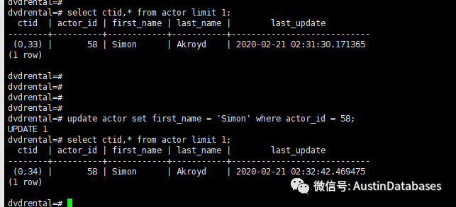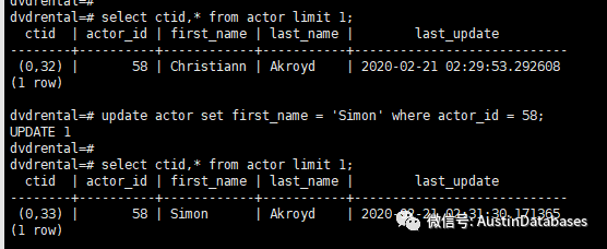 通过这个系统自带的ctid 可以很清楚,在这个行上到底做过UPDATE 操作没有,只要做了,并且是更新的值和原有的值一样的情况下,也会更新这个值。