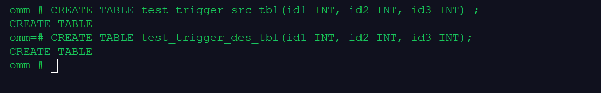 CREATE TABLE test_trigger_des_tbl(id1 INT, id2 INT, id3 INT);