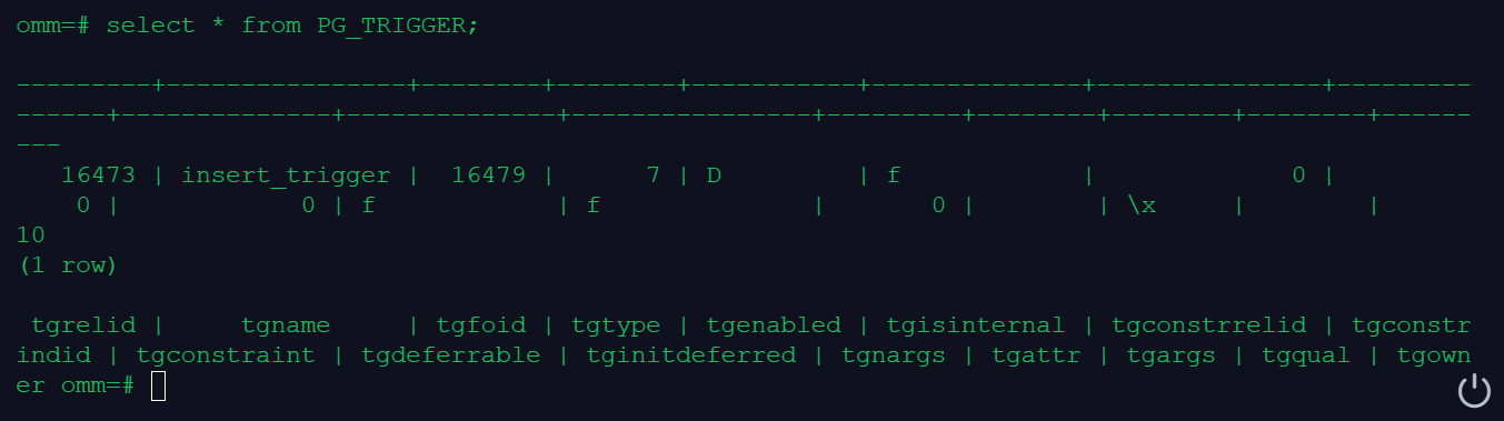 3.使用系统表PG_TRIGGER和\dS+查看触发器