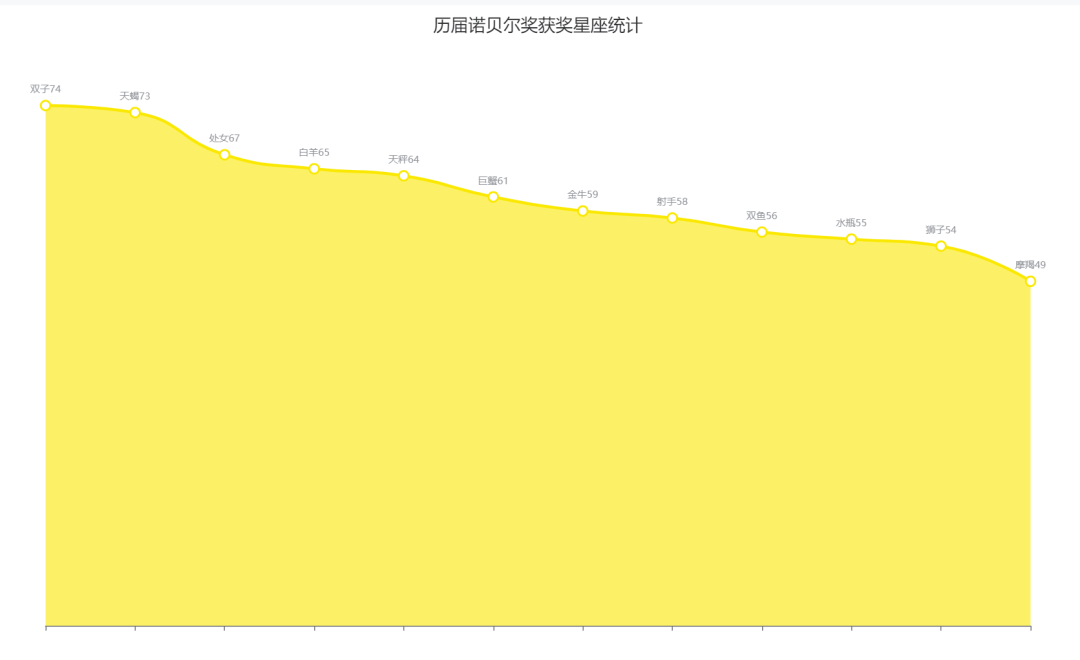 这一份数据中可以看出来,这个奖项大多由双子座、天蝎座、处女座、巨蟹座、天秤座、摩羯座这些星座所占据。