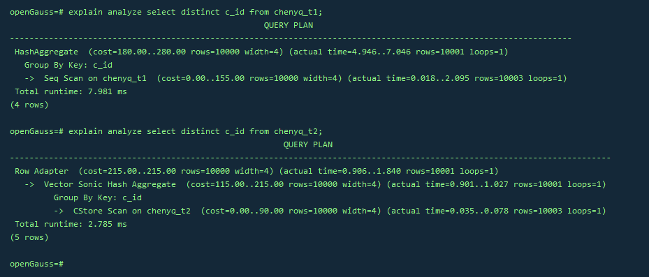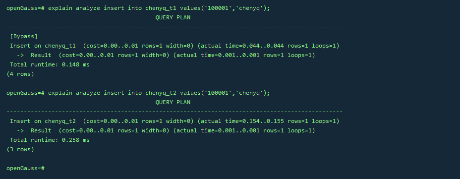explain analyze insert into chenyq_t2 values('100001','chenyq');