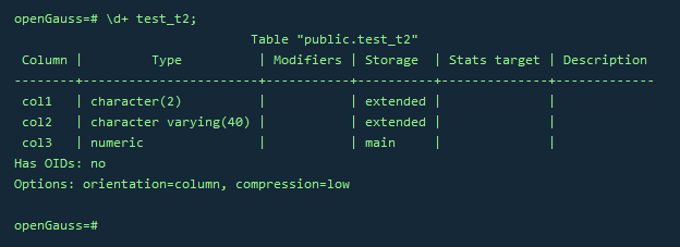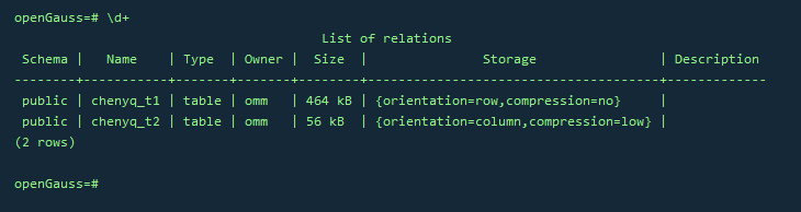 su - omm source /srv/BigData/OpenGauss/db1_env gsql -d postgres -p 26000 -r