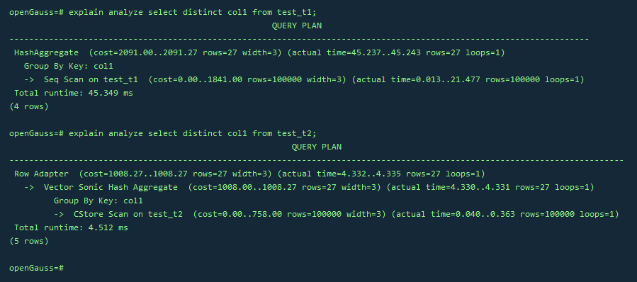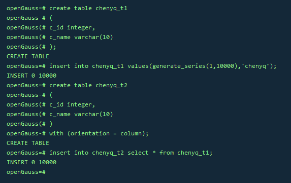 1.创建行存表和列存表,并批量插入10万条数据(行存表和列存表数据相同)