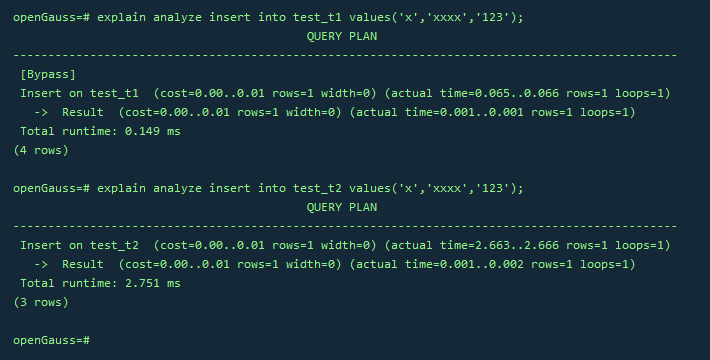 explain analyze insert into test_t2 values('x', 'xxxx', '123');