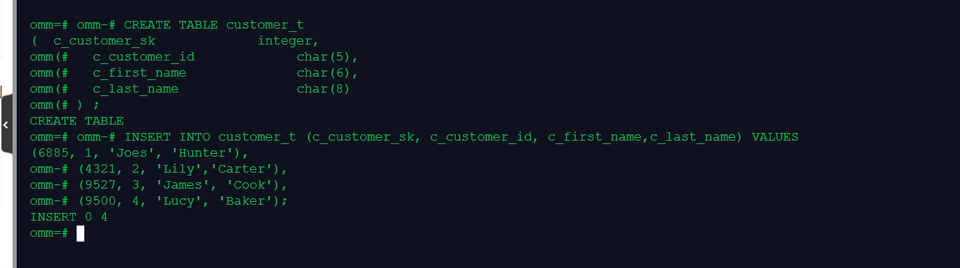 INSERT INTO customer_t (c_customer_sk, c_customer_id, c_first_name,c_last_name) VALUES
