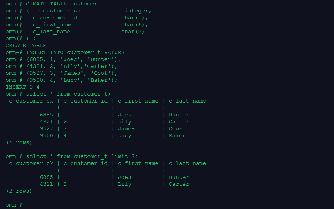 omm=# c_customer_sk | c_customer_id | c_first_name | c_last_name