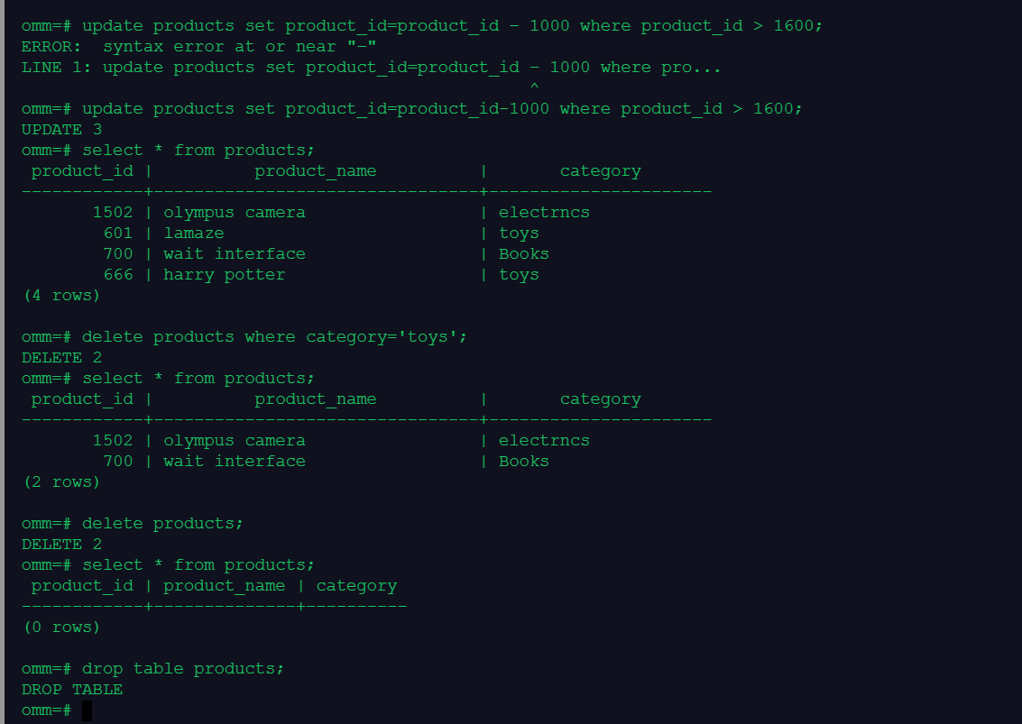 omm=# update products set product_id=product_id-1000 where product_id > 1600;